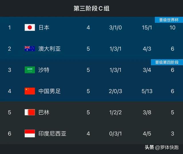 咫尺也曾完结的第五轮比赛,澳大利亚主场0-0战平沙特,中国男足客场1-0投降巴林,日本梗概率不错纵脱拿下印度尼西亚,这么一来,赛程过半后国足排行第四,与澳大利亚、沙特积分相通,算是圆满完资本次西亚之行的任务了;