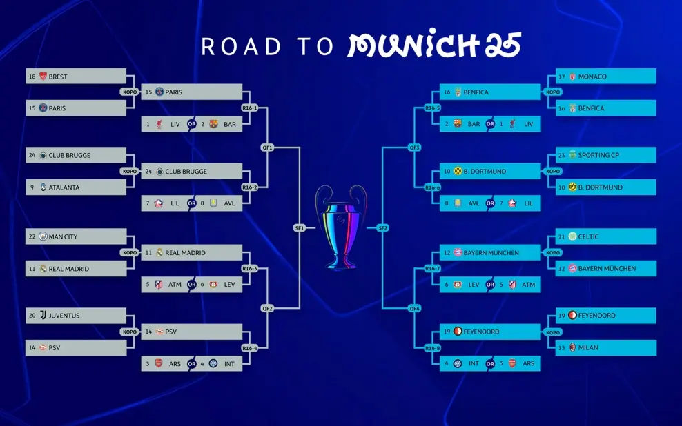 本赛季是欧战赛制检阅第一年,联赛阶段前8名纵贯欧冠16强,是为种子队。9-24名则通过附加赛捉对拼杀后决出另外8个限额,是为非种子队。