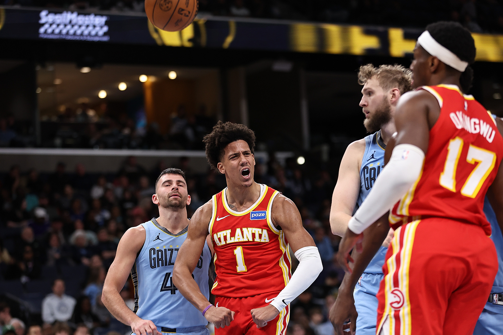 老鹰方面,杰伦·约翰逊32分15板8助,奥孔古18分,肯纳德18分,麦科勒姆15分6助,亚历山大-沃克11分;灰熊方面,莫兰特23分12助3帽,威尔斯18分,小贾伦·杰克逊17分2助5无理,考沃德17分,兰代尔13分11板,斯宾塞11分。