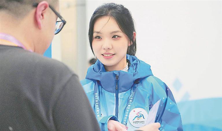 在哈尔滨国外会展中心哈尔滨第九届亚洲冬季通达会开幕式场馆内,一抹抹“志愿蓝”“看管”在场馆各处。开闭幕式志愿者、哈尔滨工业大学狡计学部大二学生闫子烁等于其中的一员。