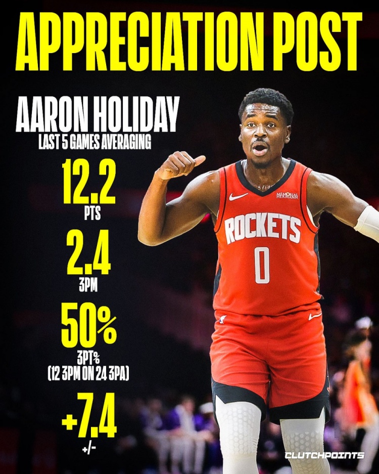 阿隆·霍勒迪近5场比赛场均12.2分体育最新信息,投进2.4个三分,三分掷中率50%(24中12),场均正负值+7.4。